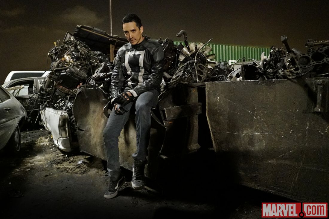 Cet été, la série de l’agent Coulson avait fait son effet au Comic Con en annonçant l’arrivée d’un personnage emblématique de l’univers Marvel pour sa quatrième saison. Le démon de la route. L’esprit de la Vengeance. Le Ghost Rider. Et celui-ci sera incarné par Gabriel Luna. Entertainment Weekly a partagé la première photo officielle du Ghost Rider. Par contre, et malheureusement, il s’agit de l’avatar humain (on attendra encore pour la version démoniaque).