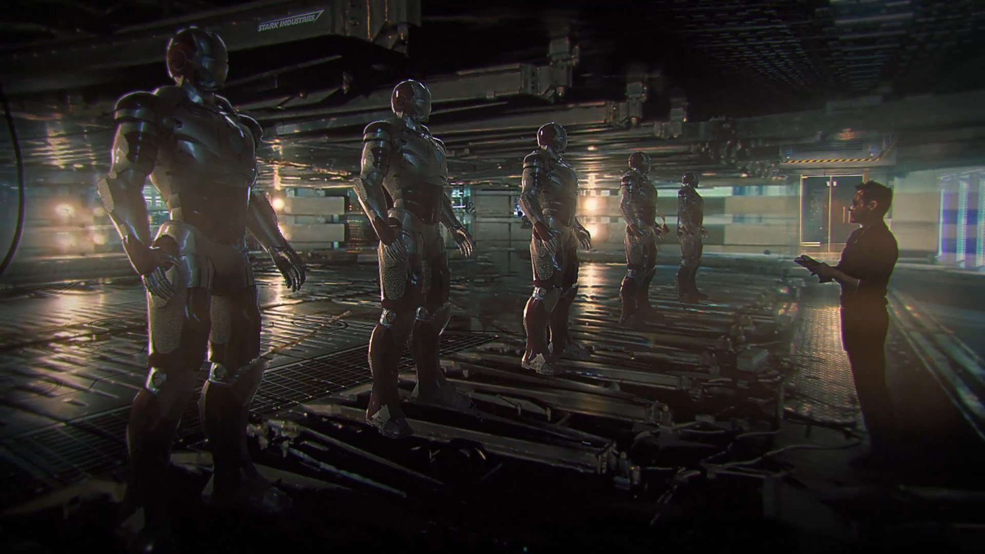 Puis, les réalisateurs Anthony Russo et Joe Russo parlent de comment Tony Stark sent cette grande menace s’approcher et à quel point il fait tout son possible pour garder la Terre en sécurité. C’est à ce moment-là qu’on découvre un concept de Tony Stark devant des armures Iron Man alignées. On notera aussi juste après le comic de la saga de l’Infini avec un tas de post-it (c’est bien l’ouvrage de référence).