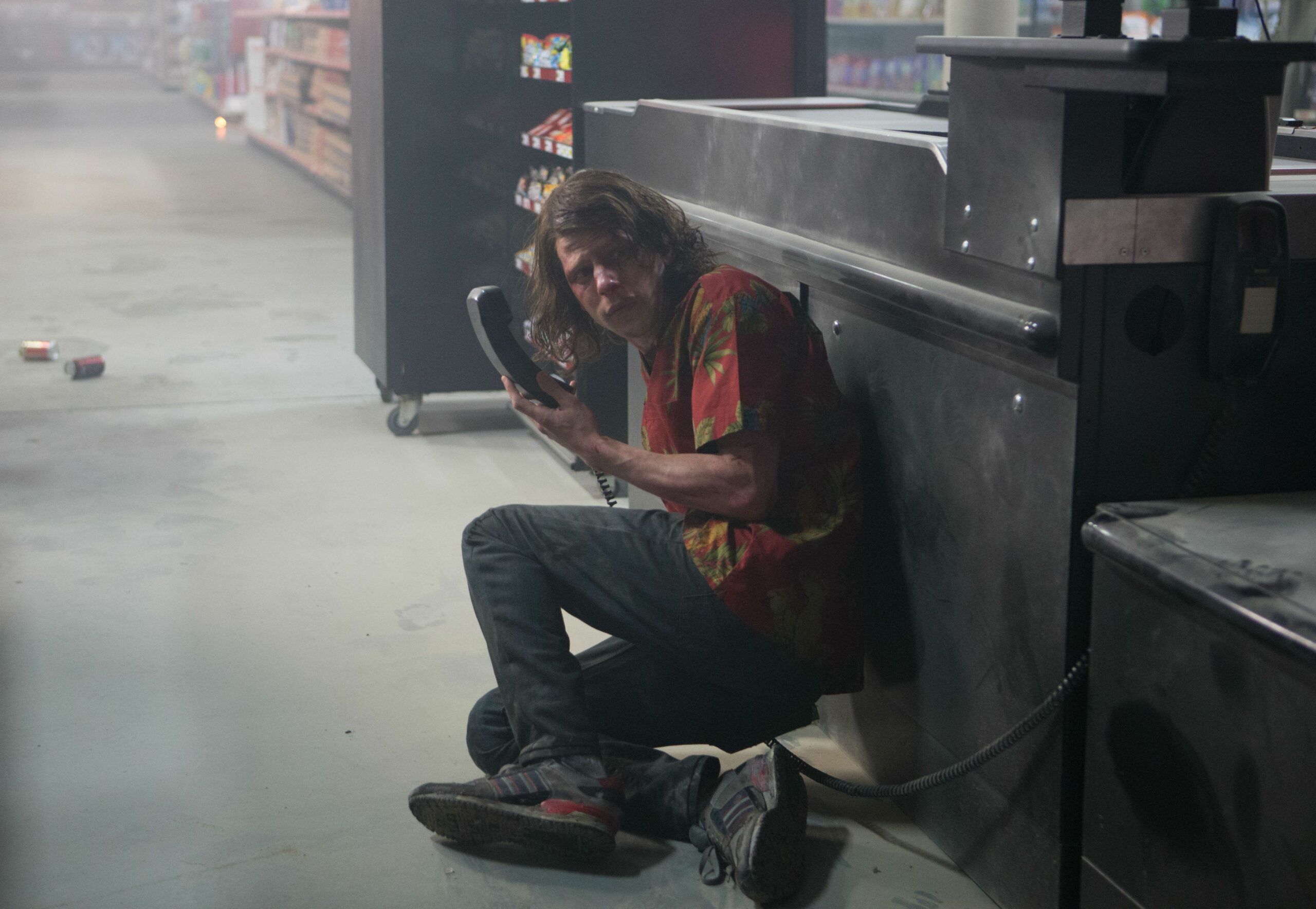C’est dommage, car pour le reste, le long-métrage de Nima Nourizadeh fait le job surtout lors des gunfights, réellement jubilatoires (voir les corps se décomposer sous les balles, miam). Jesse Eisenberg est à fond les manettes dans son rôle et arrive à se montrer convaincant dans les scènes d’action. Par contre, niveau humour, il ne m’a jamais fait rire, pourtant, il y va à fond les manettes avec une gestuelle exagérée. C’est un autre mal du film, il se veut drôle, mais l’est rarement. Kristen Stewart qui arbore une magnifique coloration rouge-orangée tient aussi la route. Les deux sont émouvants via leur love story. Dommage donc que le jeu de l’actrice laisse trop facilement deviner le twist, ruinant ainsi l’impact de ce dernier. Le reste du casting est correct, sauf pour Walton Goggins qui, lui, est au-dessus du lot en Rieur. C’est décevant que l’équipe du film n’ait pas davantage approfondi les ennemis. À l’arrivée du Rieur et Grue, on pouvait espérer que le film offre un panel de méchants charismatiques, un peu comme The Raid 2, mais non.