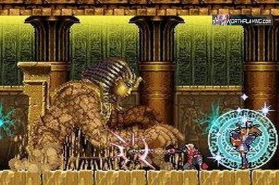 L’ambiance gothique est au rendez-vous et les musiques se fondent parfaitement avec l’exploration. Sur ce point, on ne peut qu’être enchanté. On retrouve tout ce qui fait un Castlevania justement. Les décors sont magnifiques et l’ambiance peut changer de tout au tout. Car en plus du château, nous devrons chercher les tableaux, sources de puissance de Brauner. Et là, le changement est radical. D’un château, on passe par les pyramides de l’Egypte aux bâtiments d’une ville du XVIIIème siècle. Cela ne parait pas étrange puisque c’est logique avec le pouvoir du vampire mais j’ai trouvé cela déstabilisant et pas aussi cool que j’aurai pu le croire. Je pense que ce n’est juste que pour rallonger la durée de vie du jeu et c’est bien dommage.