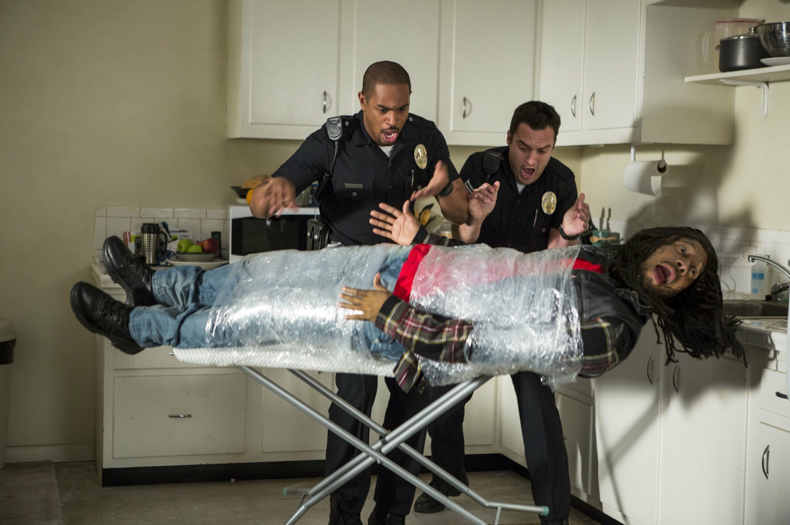 Le film n’a rien d’original. Il s’agit d’une comédie américaine reposant sur un postulat à la con (des trentenaires paumés revêtent des uniformes de policier et découvrent leurs impacts sur le reste de la société) servant de départ à une trame tout ce qu’il y a de plus classique. Quelle raison donc de voir Cops – Les Forces du désordre ? Tout simplement, le duo Wayans/Johnson dont le talent comique n’est plus à démontrer vu ce qu’ils font chaque semaine sur le plateau de New Girl – excellente sitcom en passant – il y a même un passage dans le film où j’ai cru qu’on aurait droit à Jess, je suis sûr qu’ils l’ont fait exprès. Je me suis levé en commençant à m’écrier Jess, avant de me retrouver comme un con lorsque le visage de la brune s’est affiché. VDM. Tiens, il existe toujours le site ? Bouge pas, je reviens… … … … Ouais, c’est toujours vivant. Bref, les personnages de Jake et Damon s’amusent comme des petits fous en revêtant l’uniforme de policier avant de partir en live et de se retrouver dans une enquête policière, dans le style buddy movie, qu’on croirait sorti des années 80. Comme les cultes 48 heures ou Double Détente.