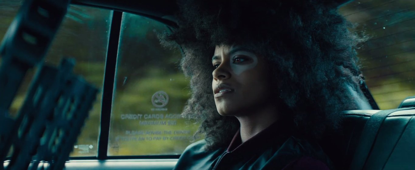 Deuxième personnage majeur : Domino. On ne va pas revenir sur l’histoire de son look dont les seuls éléments qui restent sont sa tache entourant son œil gauche, son costume en cuir, son amour des guns et ses pouvoirs. Ça fait déjà pas mal, surtout quand on sait à quel point les mutants ont été malmenés par le passé. Malgré un a priori pas très positif, mais amoindri par le fait que Domino n’a jamais été ma tasse de thé, je l’ai plutôt bien aimé. Faut dire que le charme de Zazie Beetz fonctionne du tonnerre chez moi. De plus, l’illustration de ses pouvoirs de chance est à l’image des comics, elles donnent lieu à des scènes cocasses.