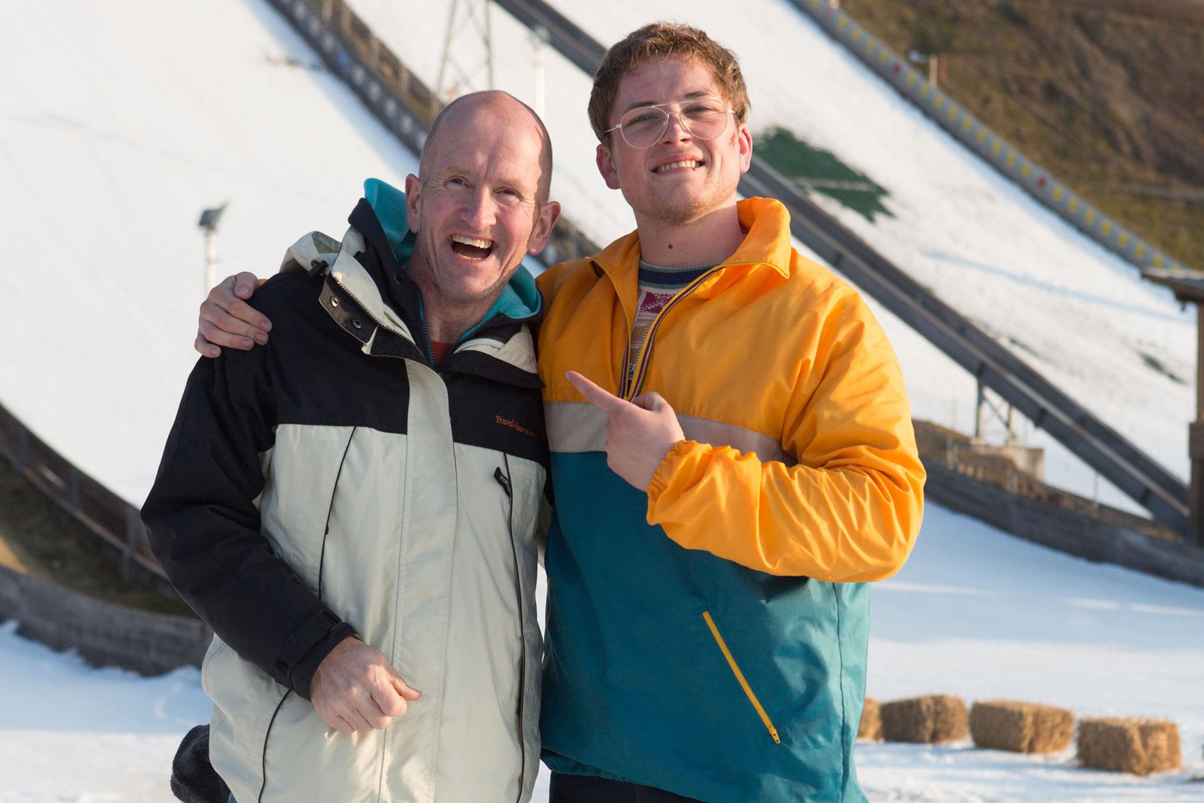 Photo d'Eddie the Eagle avec Taron Egerton et Hugh Jackman
