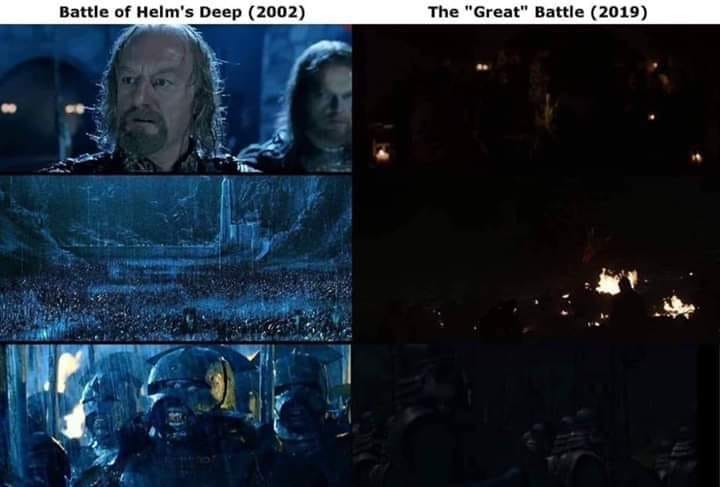 On nous avait teasé cette bataille comme étant légendaire. On nous avait rabâchés avec les moyens (épiques) employés pour la mettre en œuvre. Bref, on nous promettait le tueur de Battle of the Bastards. Je m’imaginais même la voir enterrer la bataille du Gouffre de Helm de la saga Le Seigneur des Anneaux. Ma bataille préférée de tous les temps.