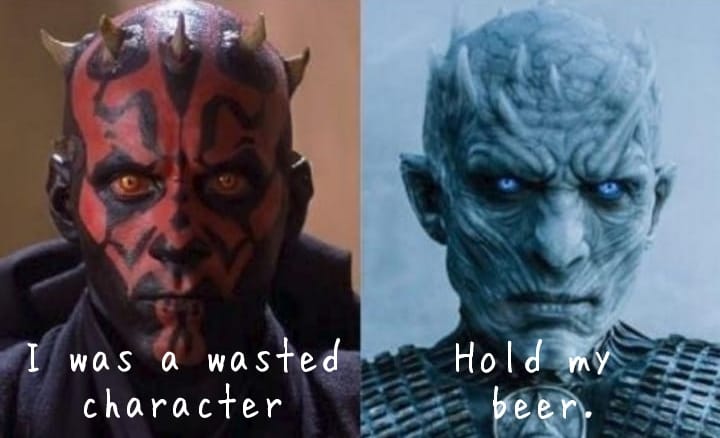 Aussi, le Night King passe pour un gros gogolito. Dans toutes les saisons, le mec se contentait de mener son armée de loin. Une technique de défense admirable. Voilà qu’au moment où il touche alors au but, alors que son armée est sur le point de gagner, malgré son immense expérience, il s’expose et se fait avoir comme un bleu (Snoke, c’est pour toi !).