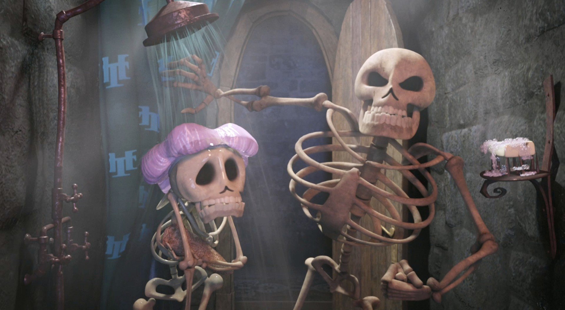 C’est encore meilleur car Hôtel Transylvanie offre une galerie de monstres n’ayant rien à envier à l’âge d’or de l’horreur selon Hollywood : Dracula, la créature de Frankenstein et sa fiancée, la Momie, le loup-garou et sa famille sans oublier l’Homme Invisible. Tout le monde bénéficie du Tartakovsky’s style et surtout ils collent au plus près de leurs voix VO ainsi on ne sera pas étonné de voir un air de ressemblance entre Dracula et Adam Sandler, ni le loup-garou et Steve Buscemi ou encore Kevin James et la créature de Frankenstein. Graphiquement, le film s’en sort pas trop mal avec par moments d’excellents plans dont le gothique est absolument splendide (celui où Dracula est seul avec son bébé face à un château en flamme semble être tout droit sorti d’un Castlevania).