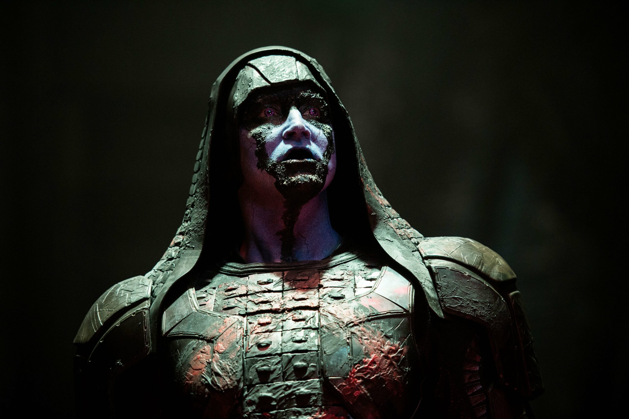 Néanmoins, comme on dit, pas de héros sans méchant. Si dans Avengers, on pouvait être déçu par Loki qui lorgne trop des deux côtés pour qu’on puisse le considérer comme un vrai méchant. Tu sais, ceux qui veulent te buter parce que ça les amuse. Et dans le style, Ronan se pose là. Un vrai bad guy. Lee Pace, totalement méconnaissable, joue à merveille celui qui accuse ! D’ailleurs en parlant d’accusation, je ne vous dis pas les frissons que j’ai reçus quand Ronan a proclamé un « accuse » qui a fait trembler la salle. De plus, Ronan, à l’inverse de Loki, fait des jolies démonstrations de puissance. Chaque séquence où il déchaîne ses pouvoirs m’a fait rugir de plaisir. Ce sont des cases de comics qui prennent vie, comprendre avec des flux d’énergie qui envahissent la totalité de l’écran. Les Gardiens de la Galaxie est le premier Marvel (et même d’ailleurs super-héros movie) à offrir des images de puissance visuellement impressionnantes. Au départ, j’avais peur du choix de Lee Pace pour le rôle de Ronan, car l’acteur n’est pas vraiment dense physiquement alors que la morphologie de Ronan dans le comic est proche de celle de Thor. Finalement, son costume et son maquillage ont été tellement bien étudiés qu’ils font oublier ce point et rendent Ronan imposant donc inquiétant. Par contre, petite déception pour Nebula, peu exploitée en dépit d’un look très réussi, et plus grande pour Korath, totalement secondaire. Même constat pour Glenn Close. Par contre, ce n’est pas le cas pour l’inattendu Yondu incarné par le génialement détestable Michael Rooker. Je suis sûr que Michael Rooker a voulu le rôle juste pour la scène d’action qui lui est offerte. Un truc de ouf ! Merde, c’est juste une flèche… Terminons avec Benicio Del Toro et John C. Reilly, les deux offrent de belles performances malgré le faible temps qui leur est imparti (le film ne fait que deux heures et aurait pu durer vingt minutes de plus, facile, vu sa richesse – d’ailleurs, James Gunn a parlé d’excellentes scènes coupées, vivement le blu-ray).