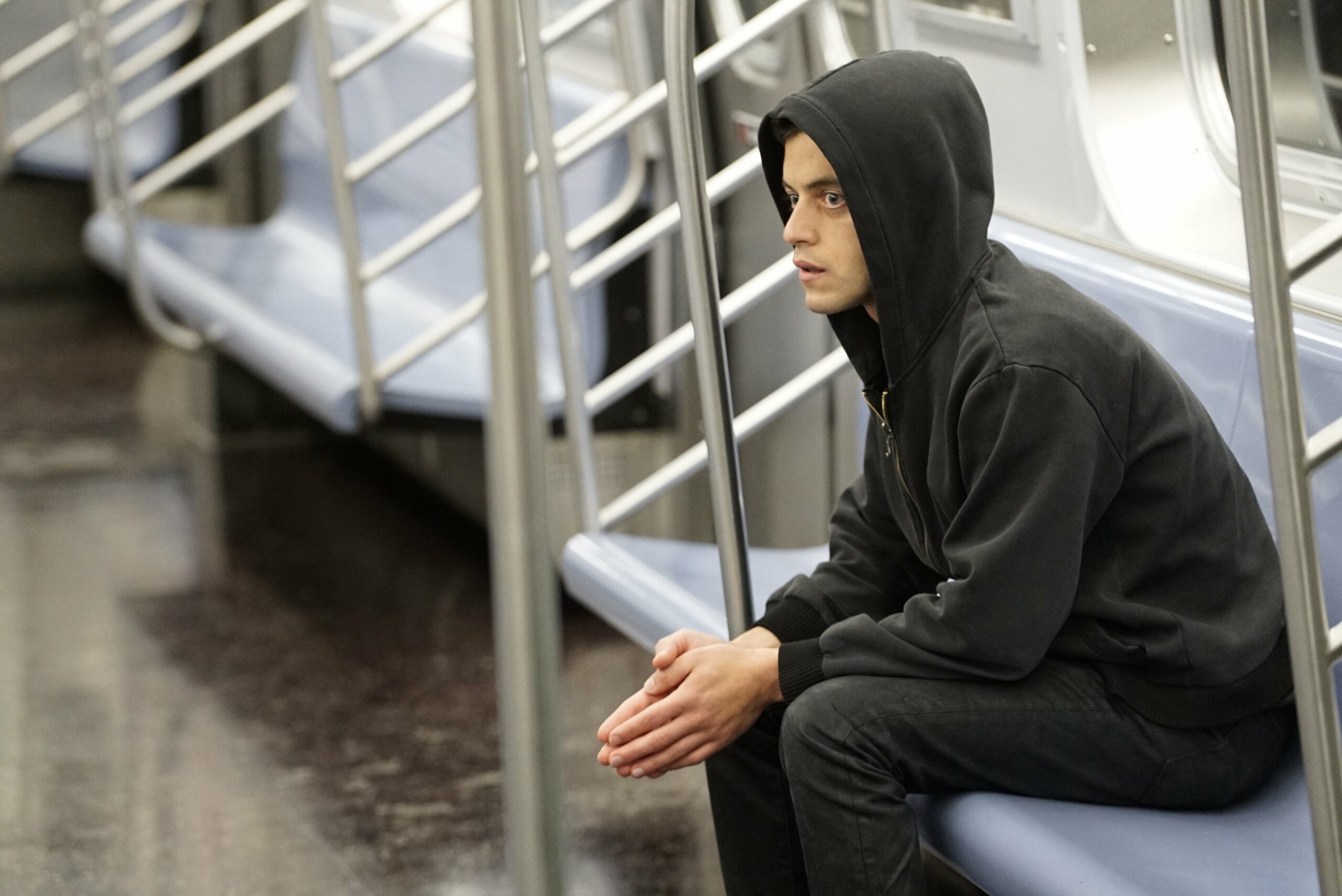 Bon dieu. C’est par ces mots que j’ai terminé la lecture du premier épisode. C’est aussi par ces mots que j’ai terminé la série. J’ai été tout simplement soufflé par la cohérence de l’univers. Pour pitcher rapidement quitte à faire dans le raccourci, ça parle d’un Dexter version hacker. Un mec qui au lieu de tuer des criminels la nuit pour assouvir ses pulsions meurtrières, traque des cybercriminels tout en étant un lui-même. On retrouve donc un même héros psychopathe avec une même utilisation poussée de la voix off. La relation avec l’entourage est aussi sensiblement proche. Elliot, le héros incarné par Rami Malek, ne trouve qu’avec Angela (Debra Morgan), sa meilleure amie (sa sœur), une « relation ». Il limite au maximum les contacts humains.