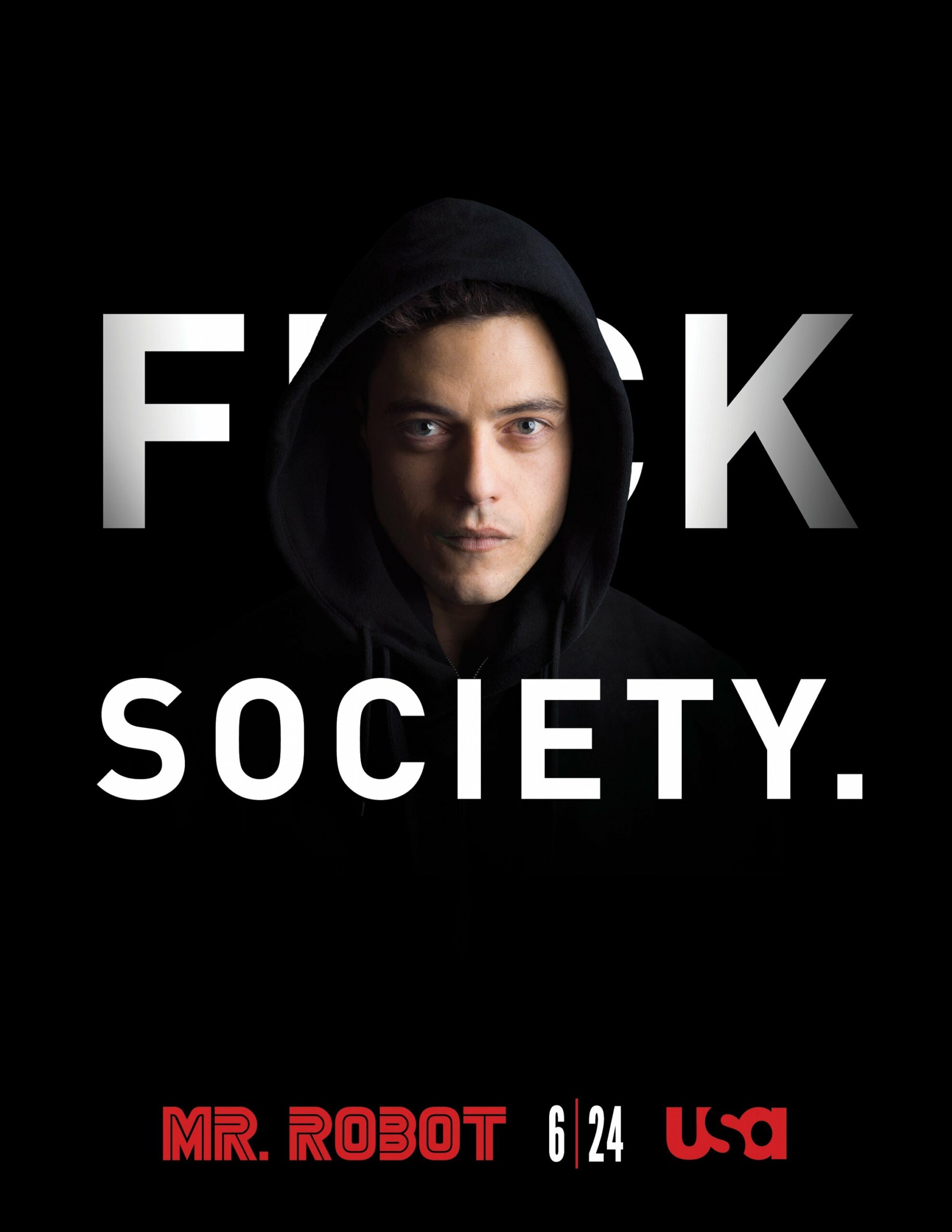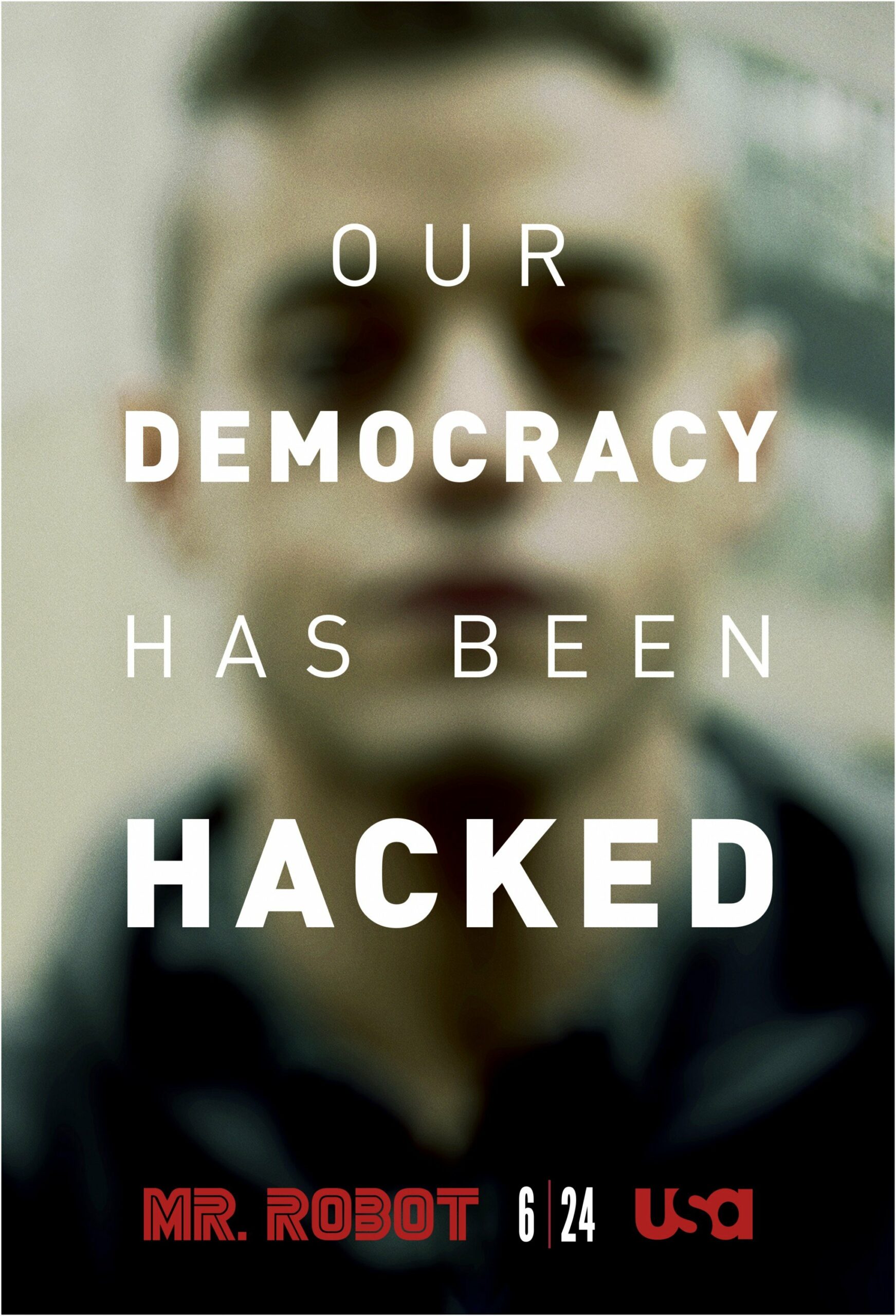 C’est marrant. Je ne sais pas pourquoi, mais après avoir découvert le titre, je m’attendais à une série sur un clown. Heureusement donc que la mystérieuse affiche était présente pour capter mon attention. Ce n’est pas tous les jours qu’on a une affiche toute noire avec juste un bonhomme en mode Assassin’s Creed. De plus, le mec affiche la tronche d’un gars un peu flippant. Pour couronner le tout, une magnifique et intrigante tagline « Our democracy has been hacked ».