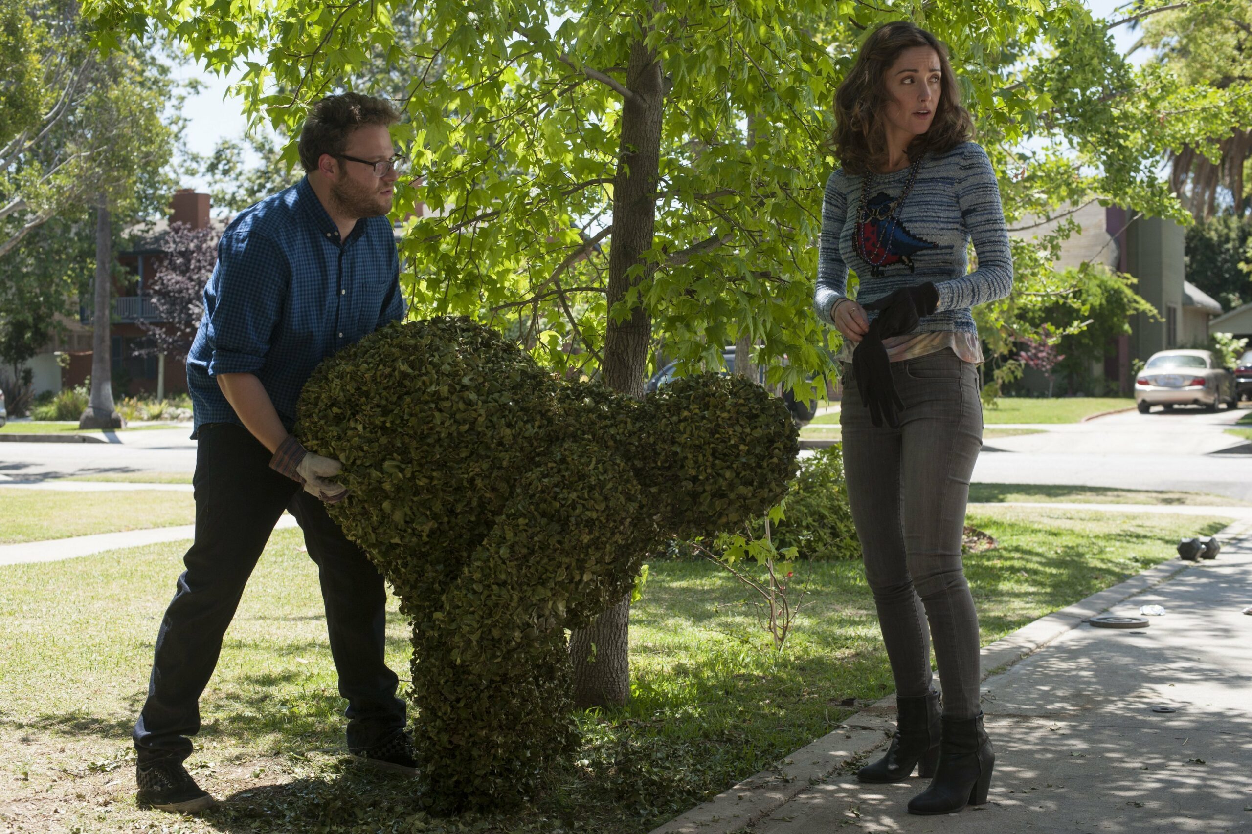 Ce que j’ai trouvé le plus drôle avec Nos pires voisins, ce sont les multiples références aux séries et aux films. Le point d’orgue, c’est sans aucun doute l’imitation de Robert de Niro période Mon beau-père et moi par Dave Franco. Saisissant et à mourir de rire… Néanmoins, le film ne se limite pas à ça, car il offre aussi des répliques mémorables et des belles séquences « sketch » comme le passage des airbags ou celui des godes. Le tout sans temps mort par l’enchainement, avec une fluidité admirable, de ces derniers (même si on peut regretter l’absence de liants dramatiques – pour illustrer avec un exemple, ça ressemble pas mal à un best of des meilleures bagarres entre voisins). Ah oui, j’ai oublié de rendre hommage à la plus belle référence du film, celle de la fin avec le bébé du couple Rogen\Byrne, Stella (jouée deux jumelles).