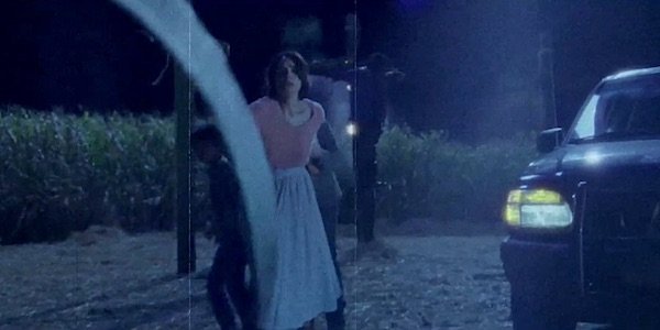 Malheureusement pas autant qu’on le voudrait… Néanmoins, son atmosphère est travaillée, le changement de cadre aidant. On se retrouve ici principalement au sein d’une maison accolée à une église abandonnée où un carnage sordide a eu lieu, le tout au fond de la campagne américain dont les champs de blé et le soleil couchant font fortement écho à Massacre à la tronçonneuse. Ambiance.