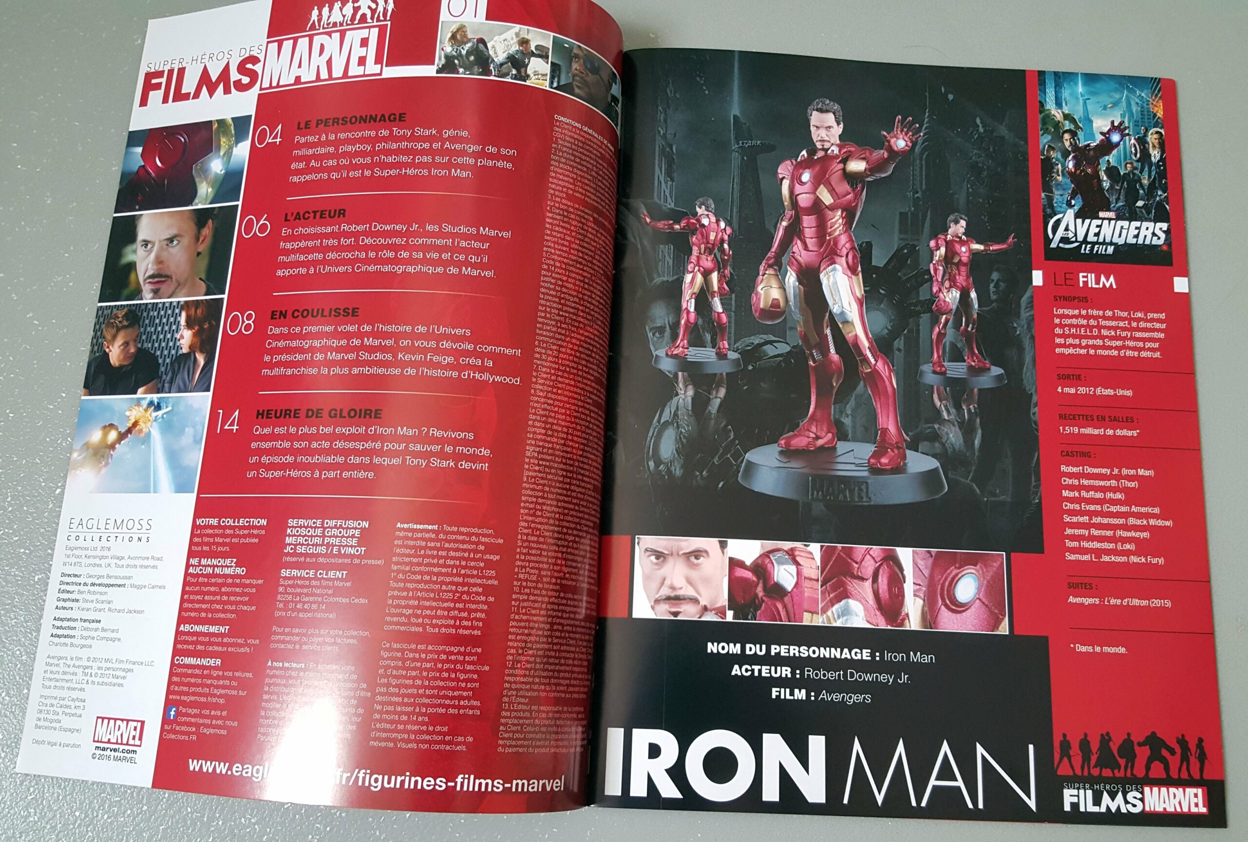 Commençons par les fascicules. Le premier est une publicité concernant la collection, permettant d’observer les prochains numéros, donc je ne m’attarde pas dessus et passe directement au second. Ce dernier résume le lancement de l’Univers Cinématographique Marvel en concentrant sur Iron Man et Avengers. Personnellement, je n’ai rien appris (en même temps…), mais j’ai trouvé ça assez sympa, car c’est bien écrit et ça résume l’histoire derrière le lancement. J’aurais aimé un document plus conséquent, mais bon…