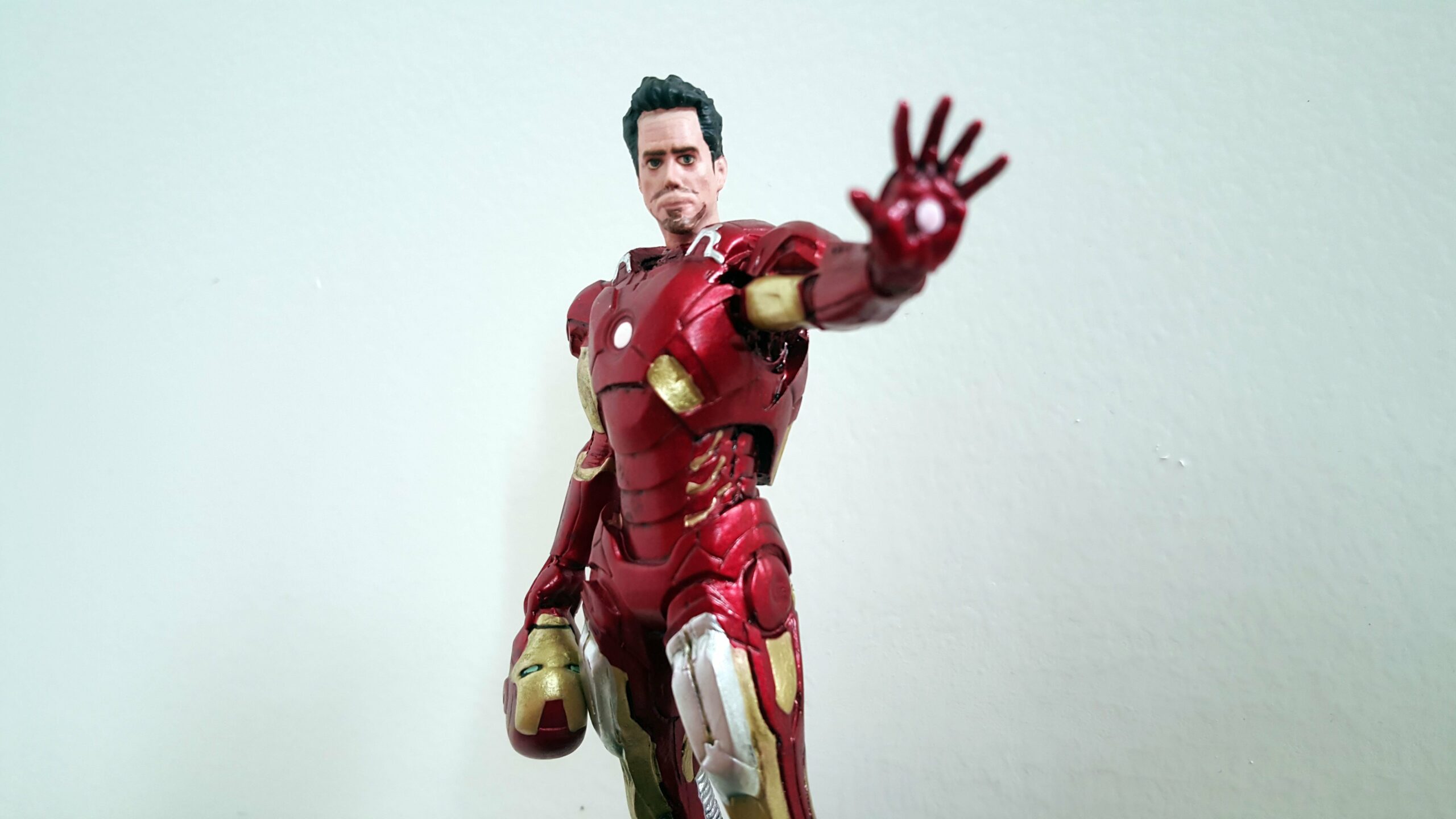 Désormais, on passe à l’élément qui fait mal : la figurine d’Iron Man dans Avengers à l’échelle 1/16. Alors là, c’est l’incompréhension qui règne. La figurine est mal faite. Il y a un vrai décalage entre la figurine de promo et celle que j’ai. La peinture ne semble pas aussi soignée, la partie dorée est assez ratée, comme si le peintre n’avait pas nettoyé son pinceau après avoir appliqué la partie grisée. Mais, le plus choquant reste le visage. Comme si on avait passé la tête de Tony Stark sous un rouleur compresseur. On dirait que quelqu’un s’est amusé à mélanger les visages de Robert Downey Jr. et Michael Jackson… Pour 3,99 €, difficile de pester, mais si ça a avait été le prix définitif (soit 15,99 €), là, ce n’est pas la même histoire. Bref, je ne peux que vous encourager à bien regarder la figurine avant de l’acheter.